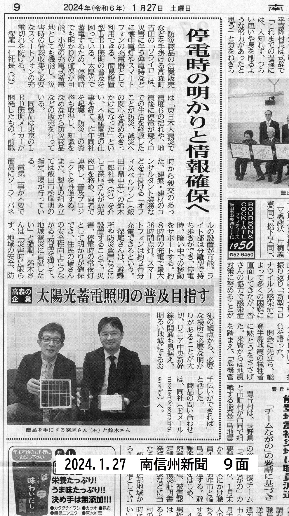 太陽光LEDライトを始め防災に関わる製品など、法人・個人問わず顧客に安心・安全・便利を届けることのできる身近な商品の企画・開発・営業を行っています。